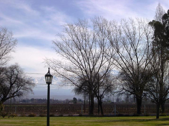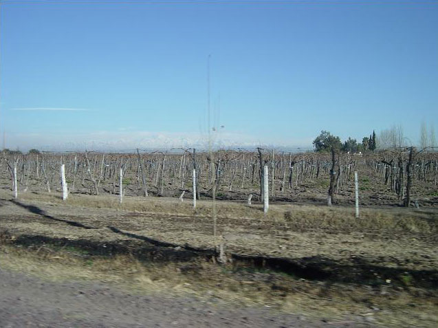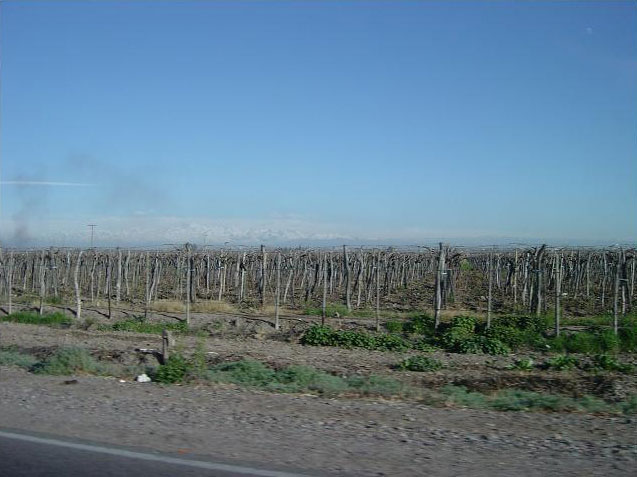 アンデス山脈の東麓にあるメンドーサは無数なぶどう園が広がっています。